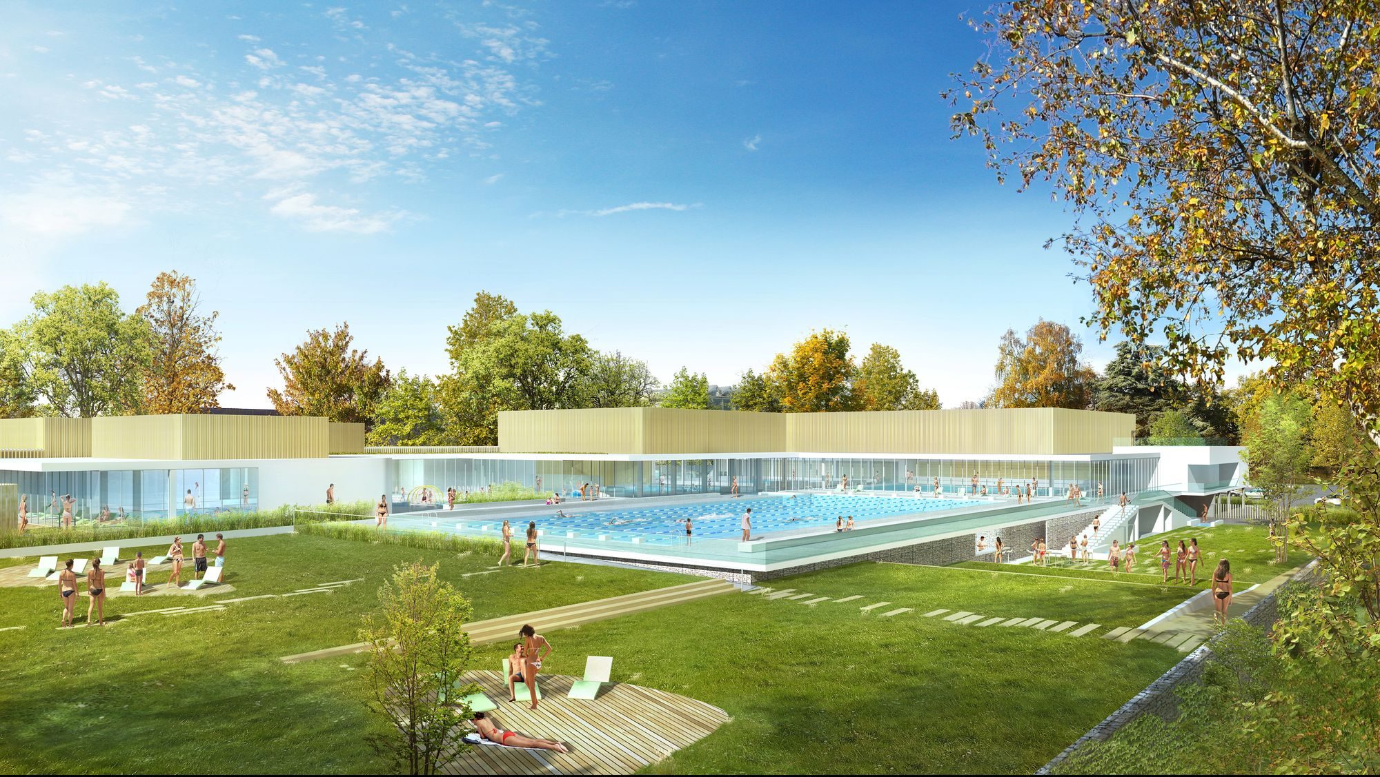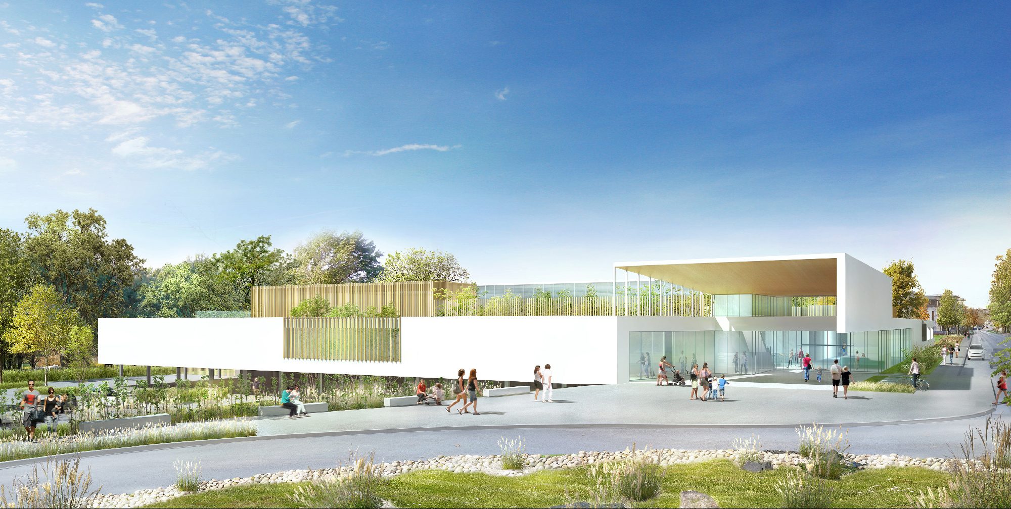 Le projet répond à un programme de centre aquatique ambitieux pour faire rayonner la Communauté d'Agglomération du Val Maubuée sur le campus Descartes. Il est composé de 5 piscine abritées par une dalle fine et largement éclairées naturellement en façade. Afin de contrôler l'apport de chaleur et limiter l'effet d'éblouissement au sud, de longues lattes de bois verticales filtrent la lumière. Le bâtiment s'inscrit sur un site en pente dont nous avons tiré au profit dans le flux du public et celui des besoins techniques et de stationnement de véhicules légers. Un jeu de terrassements d'espaces extérieurs dédiés au baigneurs prend vie dans un environnement boisé dans lequel s'intègre la construction.